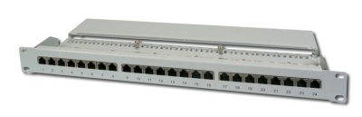 Stíněný, 24-portový patchpanel kategorie 5e pro montáž na 19“ rack (výška 1U)