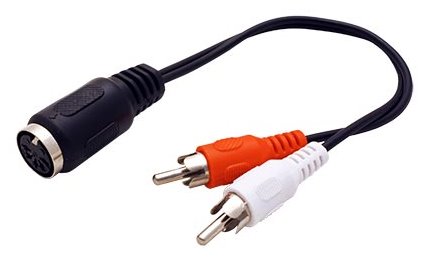 Kabel pro připojení starších audio systémů s konektorem DIN 5pin k zařízení s konektory cinch. Samice DIN 5 je výstupní - například pro připojení reproduktorů (DIN) k zesilovači (cinch).