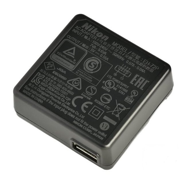 Speciální síťový zdroj s proudem 0,5 A sloužící k napájení a nabíjení určených fotoaparátů COOLPIX z elektrické sítě. Fotoaparáty COOLPIX, které jsou kompatibilní s tímto síťovým zdrojem, lze nabíjet rovněž z počítače, a to pomocí kabelu USB dodávaného s fotoaparátem.