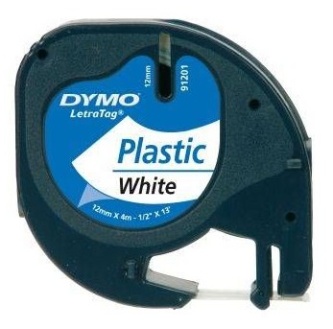 Dymo originální páska do tiskárny štítků, Dymo, 91221, S0721660, černý tisk/bílý podklad, 4m, 12mm, LetraTag plastová páska