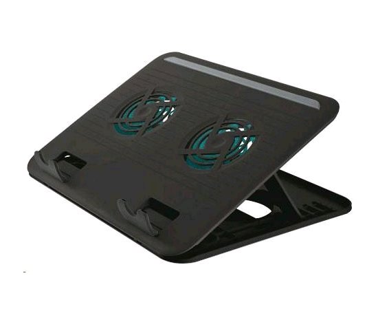 • Stojánek na notebook se dvěma vestavěnými tichými ventilátory poskytuje nakloněnou pozici pro pohodlné psaní a ochranu před přehřátím