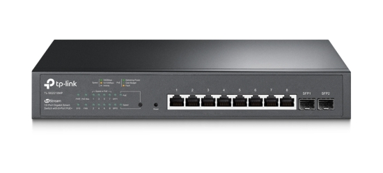 Plné gigabitové porty: 8 gigabitových portů s napájením přes PoE + a 2 gigabitové SFP sloty poskytují vysokorychlostní připojení.