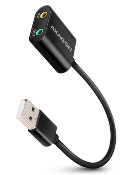 Externí USB zvuková karta AXAGON ADA-12 snadno a rychle doplní počítač o chybějící sluchátkový výstup nebo vstup pro mikrofon. Dobře také poslouží také jako náhrada porouchané původní integrované zvukovky v notebooku. Zvuková karta je vhodná jak pro stolní počítače, tak pro notebooky a dovolí připojení sluchátek nebo aktivních reproduktorů a mikrofonu. Kovový obal adaptéru je vyrobený z hliníku a zajišťuje tak dokonalou mechanickou ochranu. Napevno uchycený kabel zaručí dostatečnou flexibilitu. Zvukovka spolu s headsetem utvoří ideální příslušenství k programům pro on-line komunikaci jako Skype, Zoom, MS Teams a podobné. Instalace karty je snadná, zvukovku pouze zasunete do USB portu počítače a zbytek již proběhne automaticky.