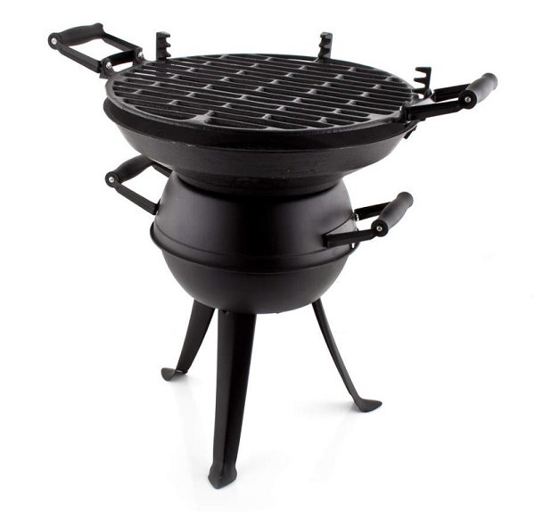 Gril SOUDEK - kvalitní stabilní litinový gril o průměru 36 cm a výšce roštu 36 cm, materiál ohniště a nohou litina, tělo grilu ocel ošetřená černou práškovou barvou.