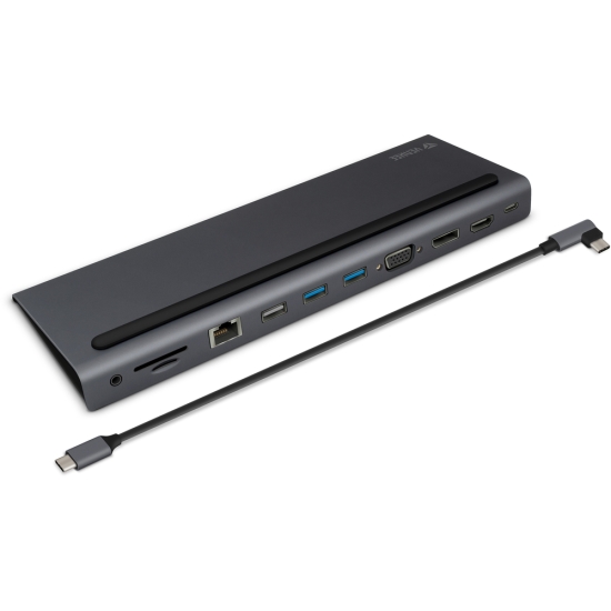 Vstup: USB C 3.2 Gen.1 Výstup: Typ C (100 W) HDMI 4K / 30 Hz DisplayPort 4K / 30 Hz VGA 1080P / 60 Hz 1× USB 2.0 2× USB 3.0 Port RJ-45 Ethernet (1 000 Mb/s) SD/TF slot Micro SD slot 3,5mm audio jack (mikrofon podporován)