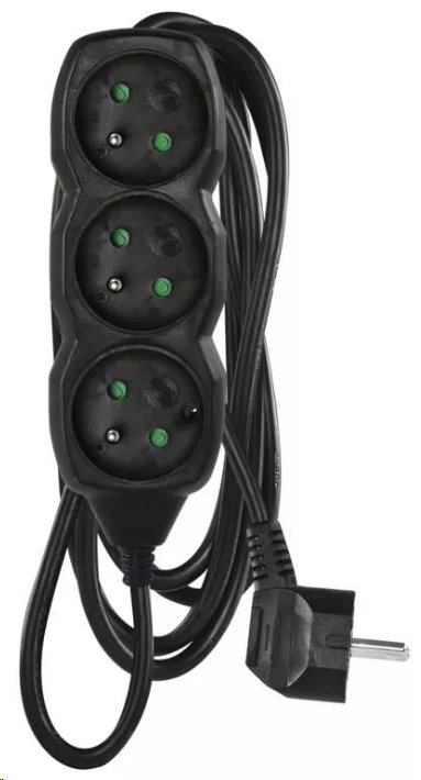 Prodlužovací kabel 3 m / 3 zásuvky / černý / PVC / 1,5 mm2