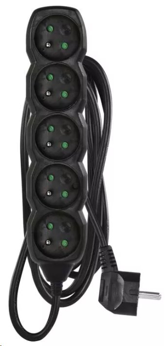 Prodlužovací kabel 3 m / 5 zásuvek / černý / PVC / 1,5 mm2