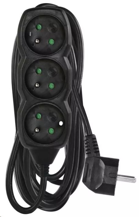 Prodlužovací kabel 5 m / 3 zásuvky / černý / PVC / 1,5 mm2