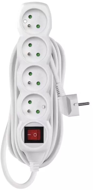 Prodlužovací kabel s vypínačem – 4 zásuvky, 5m, bílý