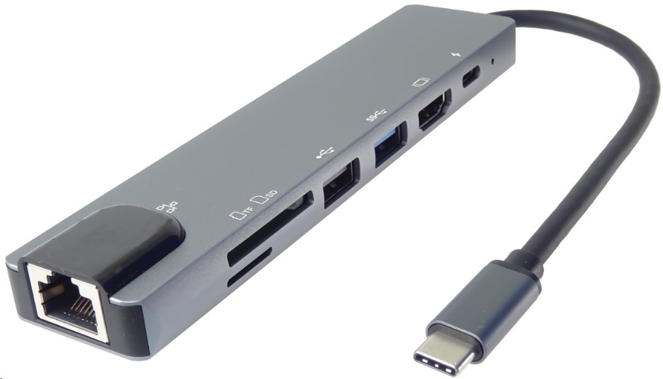 PremiumCord USB-C na HDMI + USB3.0 + USB2.0 + PD + SD/TF + RJ45 adaptér