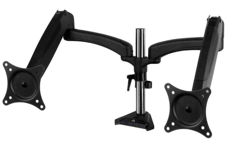 Kvalitní 3D držák pro 2 monitory s možností dalšího rozšíření o další a plynovým rameny pro lehké ovládání.