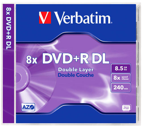 DVD+R Double layer Verbatim 8,5GB 8x.Dvouvrstvé DVD z kapacitou 8.5GB s rychlostí zápisu 8x.Určené pro DVD vypalovačky a DVD recordéry. Cena za 1kus !!!
