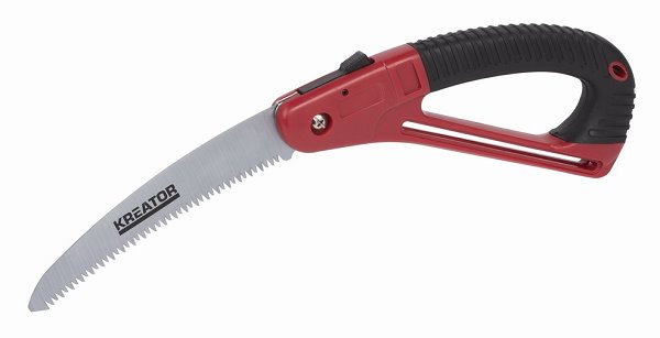 Skládací pilka Kreator KRTGR5001 je skvělým pomocníkem pro rychlé řezání syrového dřeva. 180 mm dlouhá čepel je vyrobena z nerezové oceli a zuby broušené do tří stran značně usnadňují řezání. Ostré zuby jsou navíc pochromované.