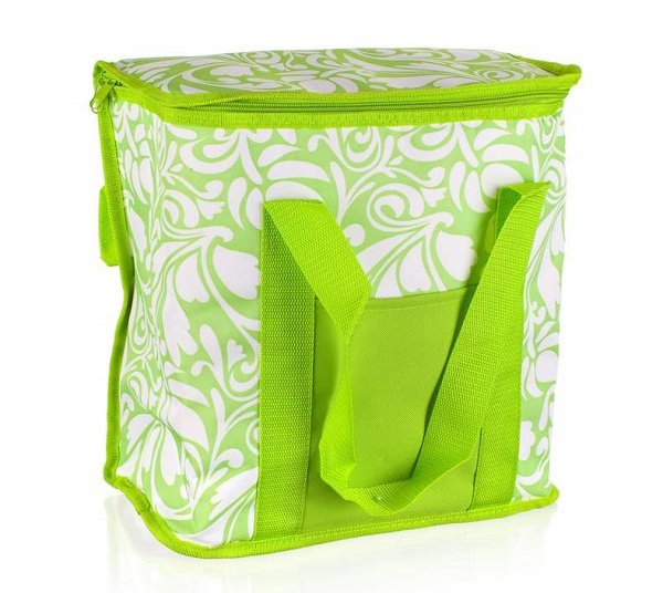Chladící taška velká 20 l - dekor 1, zelená s bílými květy