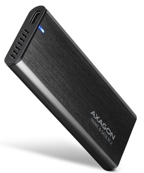 Univerzální externí AXAGON EEM2-SG2 RAW box s USB 3.2 Gen 2 rozhraním určený pro M.2 NVMe nebo SATA SSD disky. Spolehlivé připojení umožňuje oboustranný USB-C konektor na boxu. V balení naleznete nejen kabel USB-C -> USB-C pro připojení boxu k počítači, ale také USB-C -> USB-A redukci. Můžete tak box připojit k jakémukoliv volnému USB portu na notebooku.