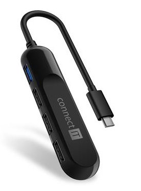 Prakticky tvarovaný USB-C hub pro připojení až 4 USB-A periferií. Umožní připojení dalších periferií jako jsou např. myš, klávesnice, MP3 přehrávač, scanner, tiskárna, digitální fotoaparát, externí pevný disk, flashdisk atd.