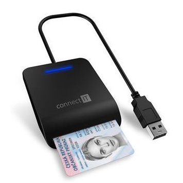Praktická externí čtečka eObčanských průkazů Vám umožní připojit se k účtům státní správy ať jste kdekoliv. Je kompatibilní s bankovními čipovými kartami a většinou smart karet. Používá zpětně kompatibilní rozhraní USB 2.0, díky němuž je zajištěn bezproblémový a rychlý přenos dat mezi zařízeními. Podporuje eObčanky s čipem a bankovní čipové karty.