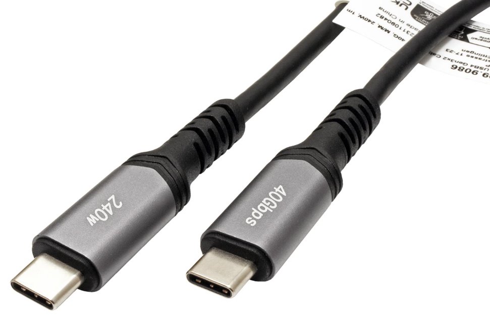 Kabel USB4 generace 3x2 s oboustranným konektorem USB C s podporou PD (Power Delivery) až 240W.