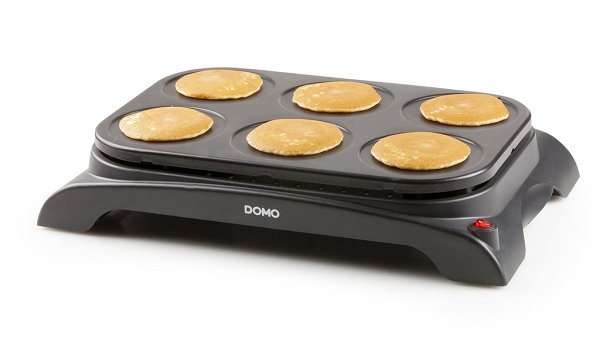 Elektrický lívanečník na 6 lívanců o velikosti 11,5 cm. Nepřilnavý povrch ILAG Corflon Ultra. Včetně naběračky přesně na 1 lívanec.