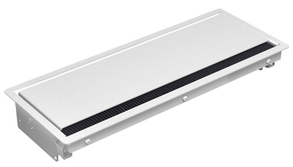 Elegantní, výklopné přípojné místo v úrovni stolu. Umožňuje snadnou montáž do otvoru v desce stolu. Box s uživatelsky konfigurovatelnými moduly se jednoduše vkládá do držáku. Díky integrovanému ochrannému kartáčku je možno po zapojení držák sklopit a přípojné místo tak nevyčnívá nad úroveň stolu. Nízká vestavná hloubka dovoluje montáž i ve stísněných prostorech.