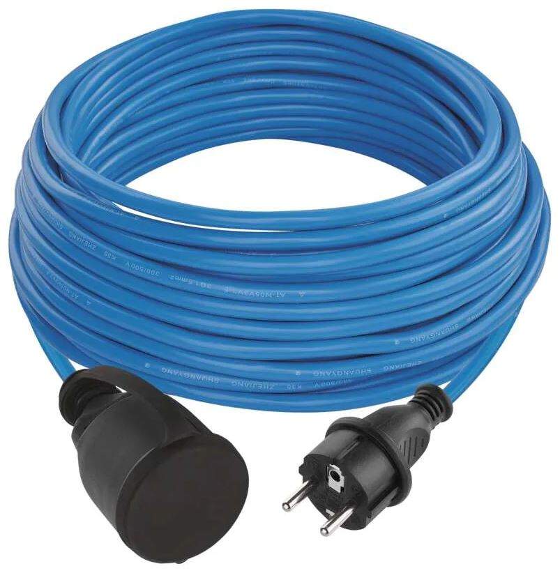 Počasí odolný prodlužovací kabel 20 m / 1 zásuvka / modrý / silikon / 230 V / 1,5 mm2