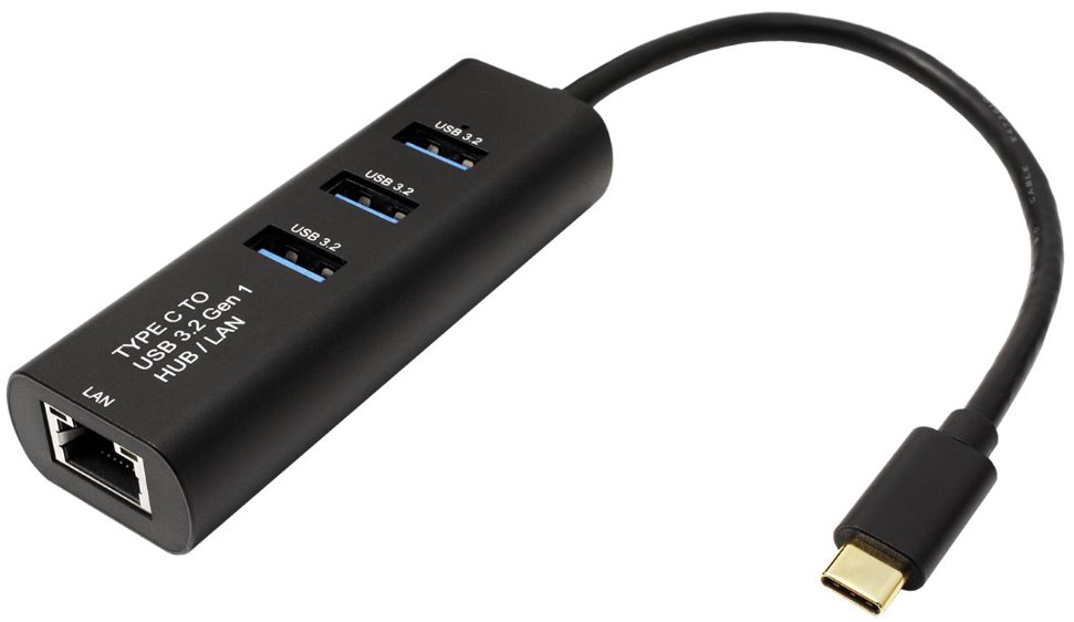 Adaptér pro připojení Ethernet sítě do PC přes USB C konektor. S 3 portovým USB 5Gb/s (USB 3.2 Gen.1 / USB 3.0) hubem.