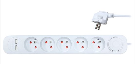 výstup 1x 10A + 2x 2,5A/230V =>max. 15A vypínač ochranné dětské pojistky v zásuvkách barva: bílá