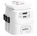 Napájecí redukce "cestovní adaptér" pro dvoupólové vidlice s nabíjecím adaptérem s konektory USB A a USB C a s podporou Power Delivery. Pro připojení napájecích kabelů nebo napájecích adaptérů a pod. z různých zemí do různých zemí. Součástí je nabíjecí a