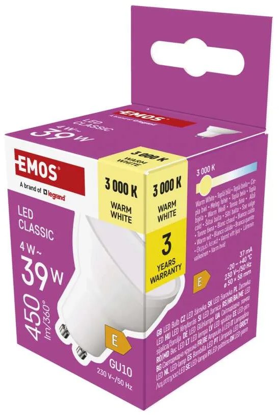 LED žárovka Classic MR16 / GU10 / 4 W (39 W) / 450 lm / teplá bílá