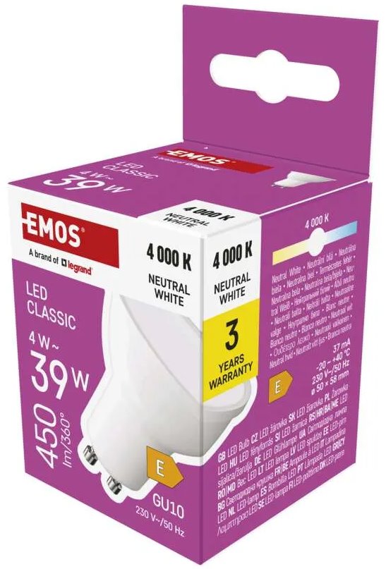 LED žárovka Classic MR16 / GU10 / 4 W (39 W) / 450 lm / neutrální bílá