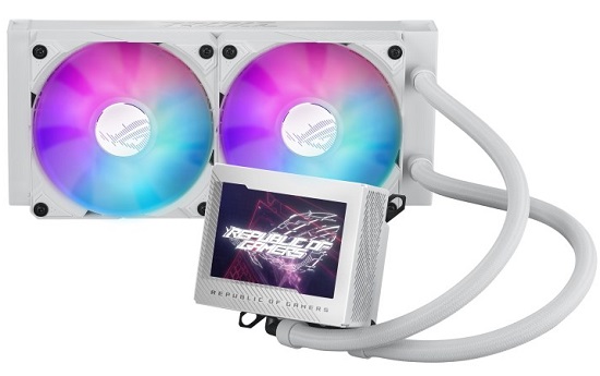 Chladicí kapalina proudí skrz chladič s vyšším výkonem a dvěma 120mm ARGB ventilátory ROG, které využívají magnety pro usnadnění instalace.