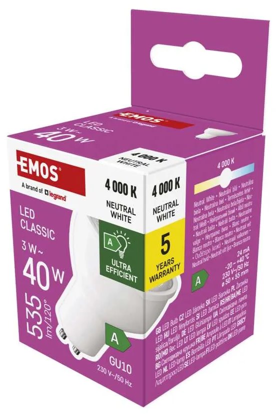 LED žárovka Classic MR16 / GU10 / 3 W (40 W) / 535 lm / Neutrální bílá