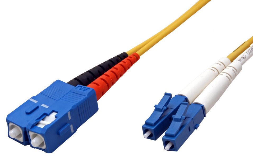 Duplexní optický kabel s konektory LC - SC. Pro propojení dvou zařízení s konektory LC a SC.