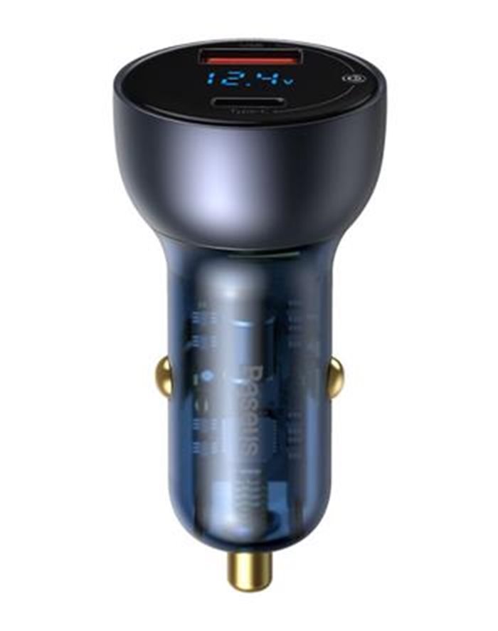 Baseus Particular Digital Display Dual USB nabíječka s výstupem USB a USB-C a LED displejem se stavem nabití akumulátoru ve voze a vysokým výkonem 65W. Nabíječka je vyrobena z atraktivního poloprůhledného ABS plastu. Podporuje nabíjecí proud 4.5V, 5V, 9V, 12V a 20V