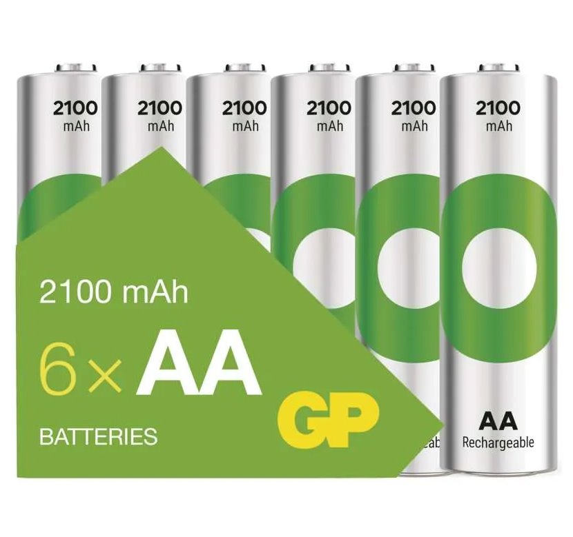 Nabíjecí baterie GP ReCyko 2100 AA (HR6) velikost baterie AA chemické složení NiMH kategorie/řada ReCyko možnost nabíjení ano kapacita 2 100 mAh napětí 1,2 V typ HR6 (tužka, AA) provozní teplota -20 °C až +50 °C počet nabíjecích cyklů až 500