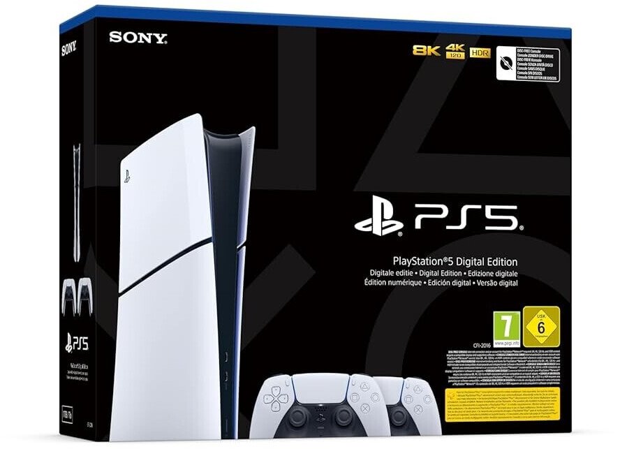 Tato verze konzole PS5 s podtitulem "Digital Edition" je odnoží klasické konzole PS5, dodává se bez diskové mechaniky. Abyste mohli nakupovat a stahovat hry z obchodu PlayStation Store, musíte být přihlášeni k účtu PlayStation Network.