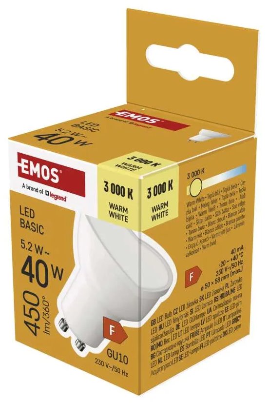 LED žárovka Basic MR16 / GU10 / 5,2 W (40 W) / 450 lm / teplá bílá