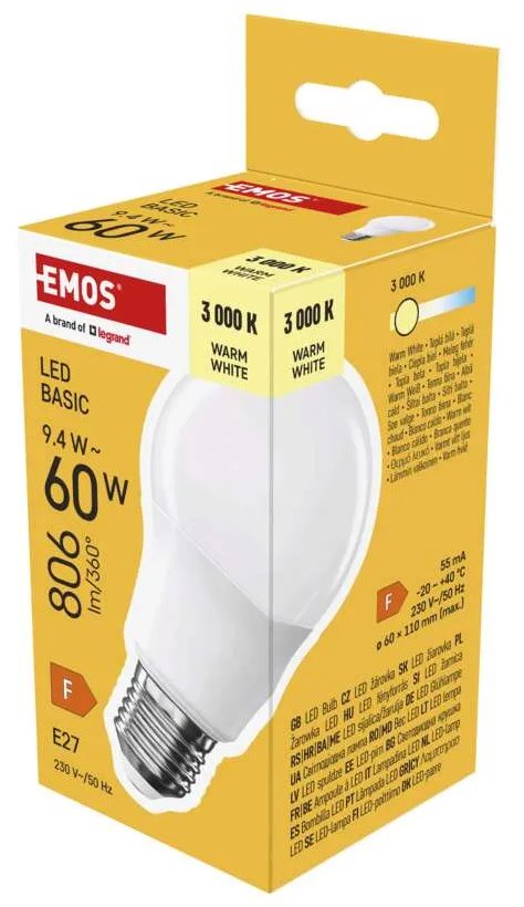 LED žárovka Basic A60 / E27 / 9,4 W (60 W) / 806 lm / teplá bílá
