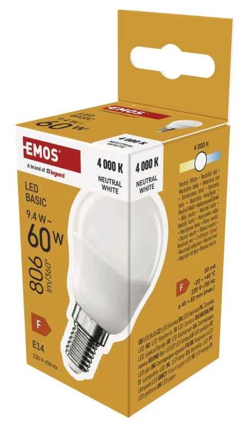 LED žárovka Basic Mini Globe / E14 / 9,4 W (60 W) / 806 lm / neutrální bílá