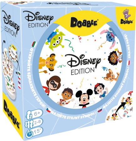 Objevte symboly s vašimi oblíbenými postavičkami od Disneyho a Pixaru v této speciální edici klasické hry Dobble: hry na postřeh a rychlé reflexy, která je vhodná pro každého!