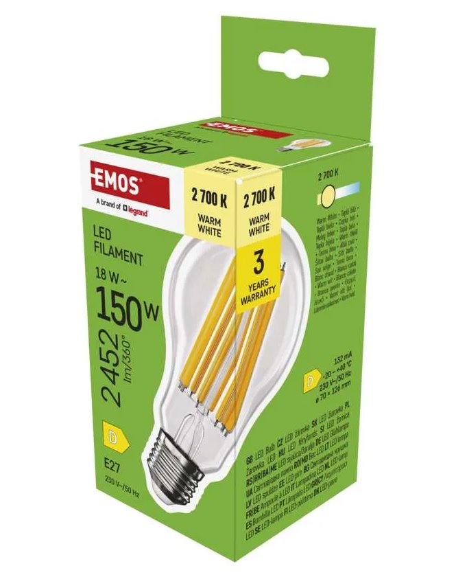 LED žárovka Filament A70 / E27 / 18 W (150 W) / 2452 lm / teplá bílá