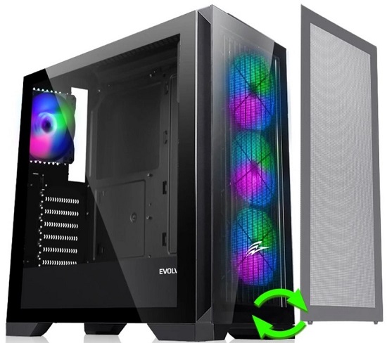 Ptero Q2+, 2x čelní panel - sklo /mřížka, 4x vent, case ATX - černý •Počítačová skříň - ATX, mATX (Micro ATX) a mITX (mini ITX) •volitelný přední panel, •balení obsahuje skleněný přední panel (temperované sklo) a přední panel s mřížkou •2x 3,5", 3x 2,5" •2x USB 2.0, 1x USB 3.0, •vstup na sluchátka/mikrofon, •4x 120mm ARGB ventilátor •chladič CPU 164mm •grafická karta 280/390mm (390mm při demontáži HDD rámečku) •bez zdroje •bočnice temperované sklo