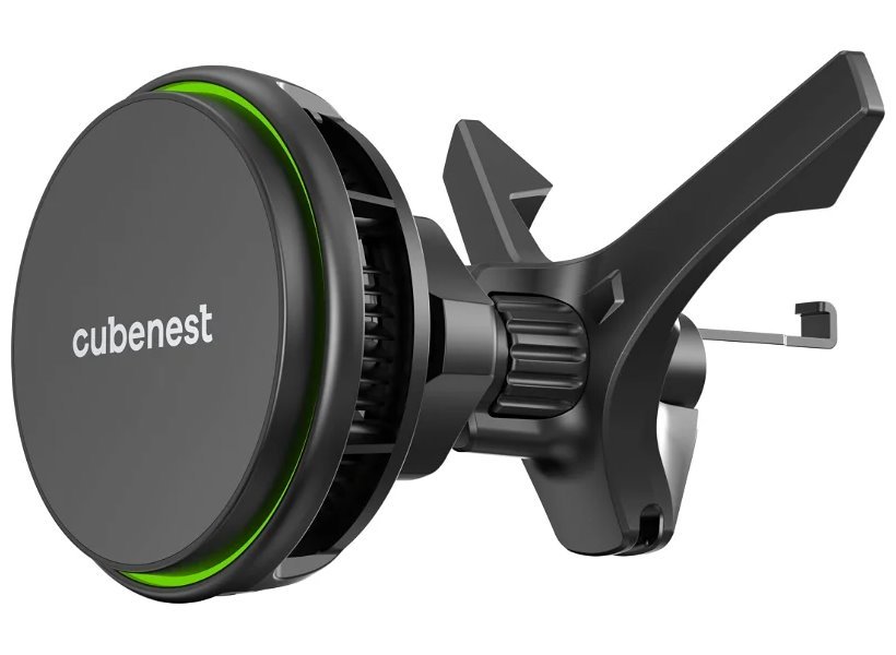 Držák, do auta, do ventilační mřížky, na okno, kompatibilní s MagSafe, s bezdrátovým nabíjením, výkon až 15W, USB-C, aktivní chlazení, černý Cubenest S1C2