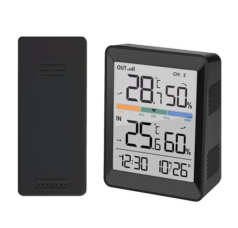 měření vnitřní teploty: -9,9°C až +50°C měření venkovní teploty: -40°C až +70°C měření vnitřní a venkovní vlhkosti: 20% až 95% paměť minimálních a maximálních hodnot teploty a vlhkosti indikátor vývoje teploty a vlhkosti teplota ve stupních °C/°F hodiny, budík, časový formát 12/24, rok 1 bezdrátový senzor (součástí balení) dosah až 60 m (bez překážek) ukazatel vybité baterie napájení: hlavní jednotka: 2 x AAA (LR03) baterie (není součástí balení) senzor: 2 x AAA (LR03) baterie (není součástí balení) barva: černá