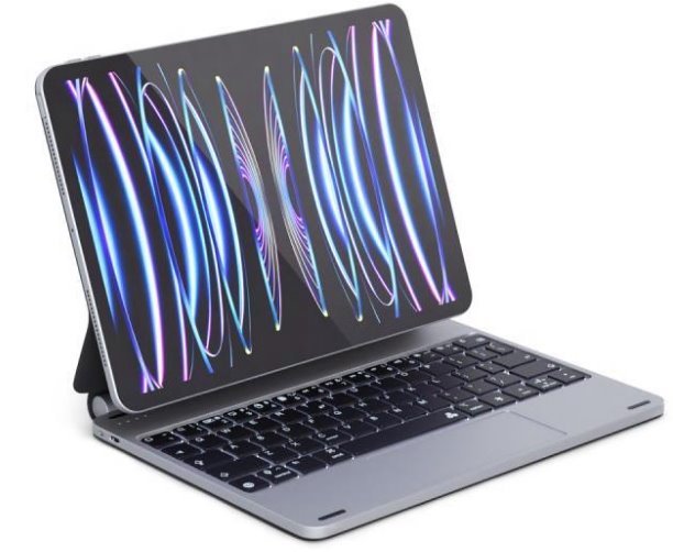 Díky multidotykovému trackpadu, který reaguje na kliknutí po celém povrchu, je používání snadné. Podsvícená klávesnice nabízí sedm barev s nastavitelným jasem a mnoho klávesových zkratek, jako například tlačítko pro kopírování/vložení. Klávesnice má vysokou výdrž, nezávislé napájení a pohotovostní režim, který vydrží až 3 měsíce. Součástí balení je kabel USB-C na USB-C. Kompatibilní: Apple iPad Pro 12,9" (2018/2020/2021/2022), iPad Air 13" M2 (2024)