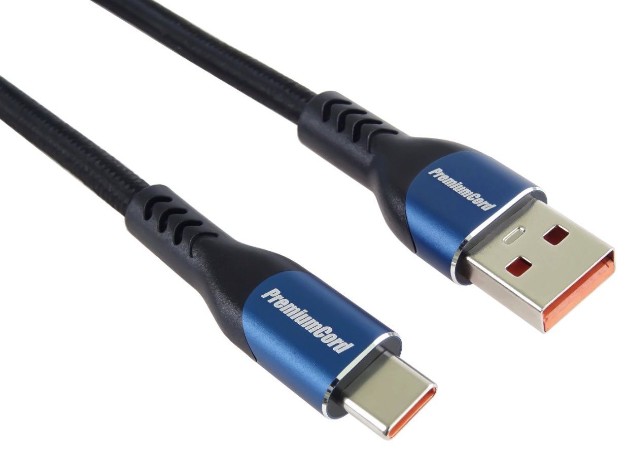 PremiumCord Super fast charging 5A kabel USB-C - USB 2.0 A bavlněný oplet a kovové hliníkové konektory 1,5m