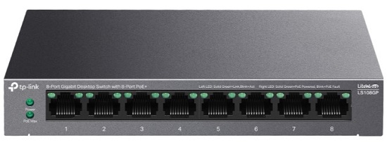• 8× 10/100/1000Mbps RJ45 Ports (Ports 1–8 supports 802.3af/at PoE+)