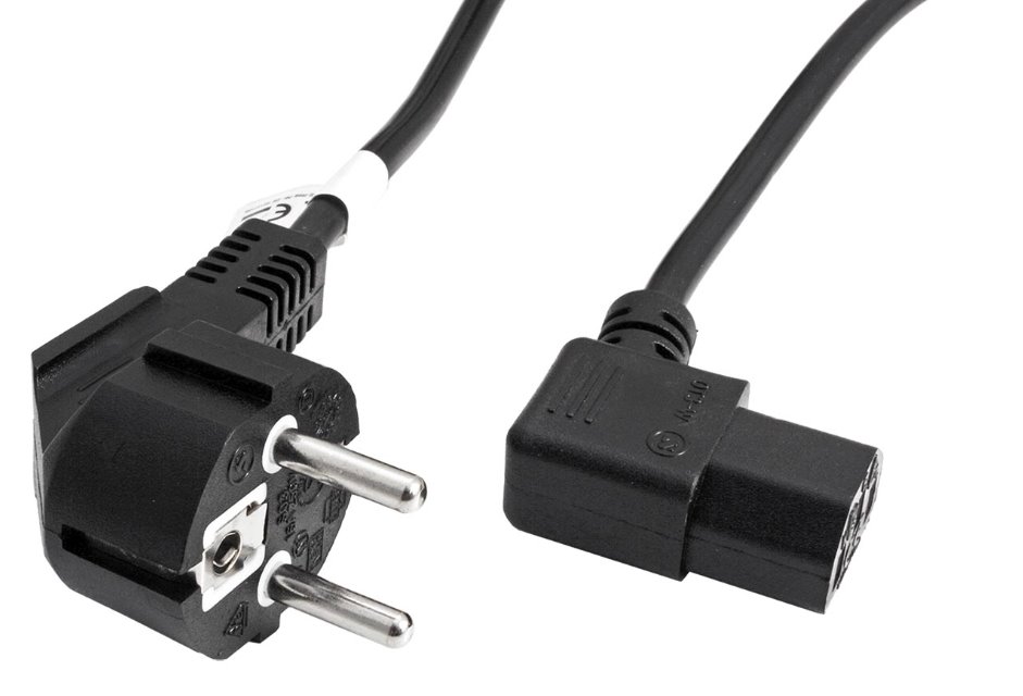 Pokud potřebujete zapojit zařízení k rozvodné síti se zásuvkou typu E nebo F (CZ, FR DE), použijte tento kabel. Na zařízení (standardní počítače, UPS…) musí být osazeny konektory IEC320 C14 (lichoběžník se svislými kontakty). Přístrojový konektor je lomený o 90° pro úsporu místa za připojeným zařízením.