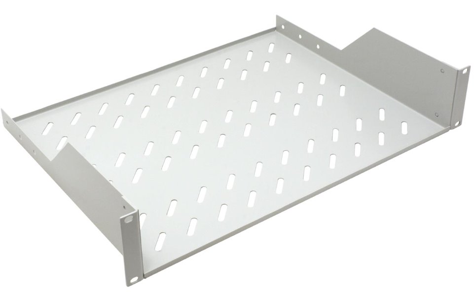 19" 2U pevná police hluboká 350mm s uchycením vpředu.