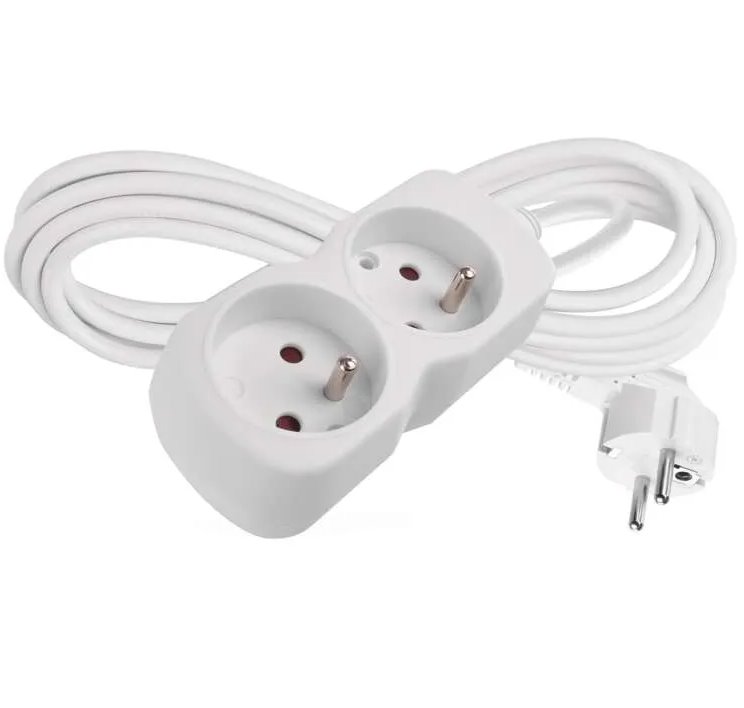 Bílý prodlužovací přívod, 2 zásuvky s dětskými clonkami a délkou 3 m. Průřezem vodiče 1 mm2. Vhodný pro maximální zátěž 10 A max.